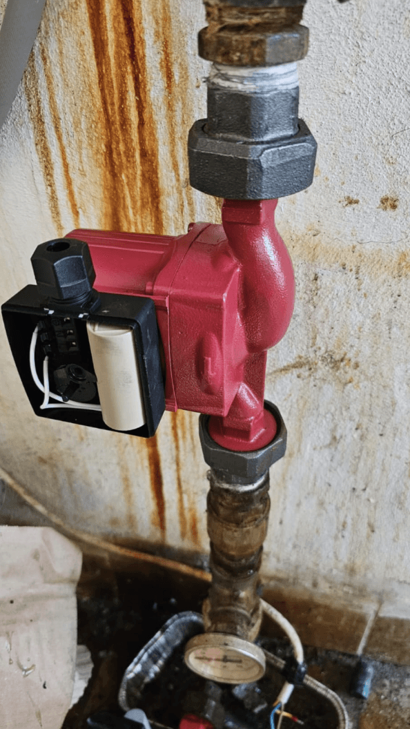 Náš tím zabezpečil dôkladný preplach systému, ktorý odstránil roky usadenín a nečistôt. Nasledovala aplikácia čistiacej chémie, dvojtýždňová cirkulácia a druhý preplach. Popri tom sme zrealizovali kľúčové modernizácie ako výmena obehového čerpadla, montáž nových termostatických ventilov a hlavíc a inštaláciu moderného rozdeľovača podlahového kúrenia s možnosťou regulácie prietokov.